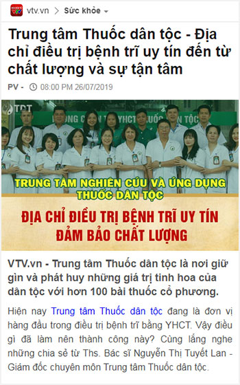 Trung tâm này trị bằng Đông y được báo chí, truyền hình thường xuyên đưa tin khen ngợi, thì bạn cũng đủ hiểu chất lượng dịch vụ thế nào rồi đó.