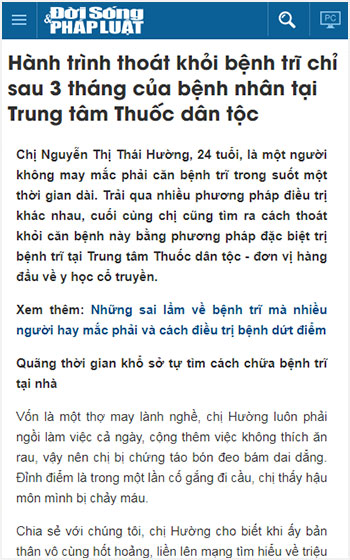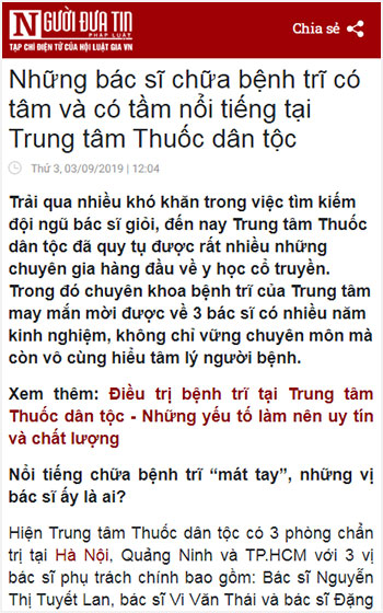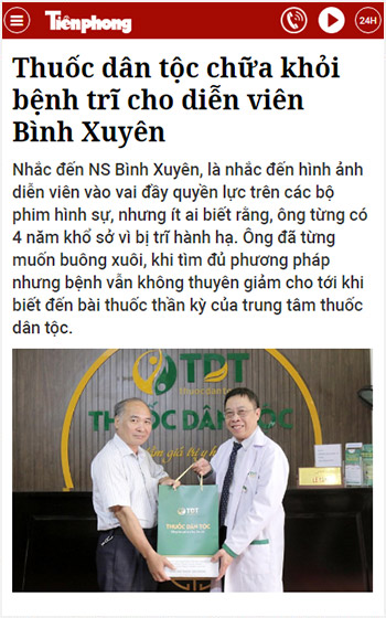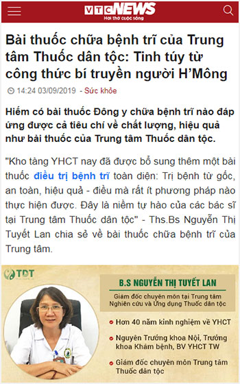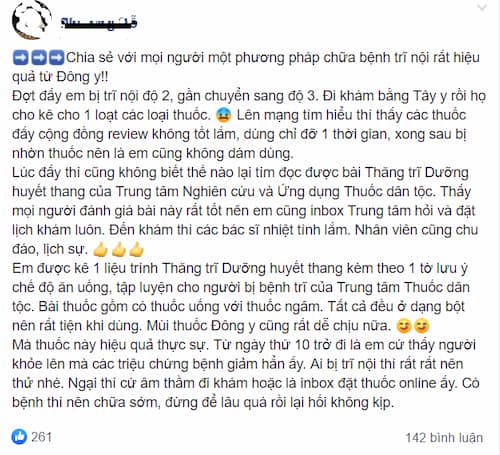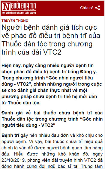 Mình thấy trên báo có giới thiệu bài thuốc của Trung tâm Thuốc dân tộc, chia sẻ người thật việc thật đã hết bệnh.